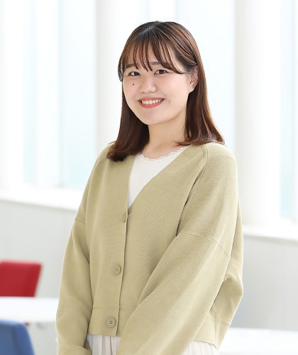 詳しく見る閉じる2年次の「保育者論」の授業が印象に残っています。一人ひとり異なる子どもの個性にどう向き合って対応していくのか、保育現場の映像や教員自身の体験談をもとに、具体的な話し方や遊びの提供方法などを学び、保育者になるための基礎を固めました。こうした学びと並行して「子どもケアセンター」の託児ボランティアにも参加し、講義で学んだことを思い出しながら子どもと向き合ううちに、泣いたり笑ったりする気持ちが想像でき、先回りして行動できるようになりました。採用試験では4年間で身につけた知識やスキルをアピールし、合格することができました。今後も子どもたちの感情を受け止めながら、一人ひとりに合わせた保育を行っていきます。